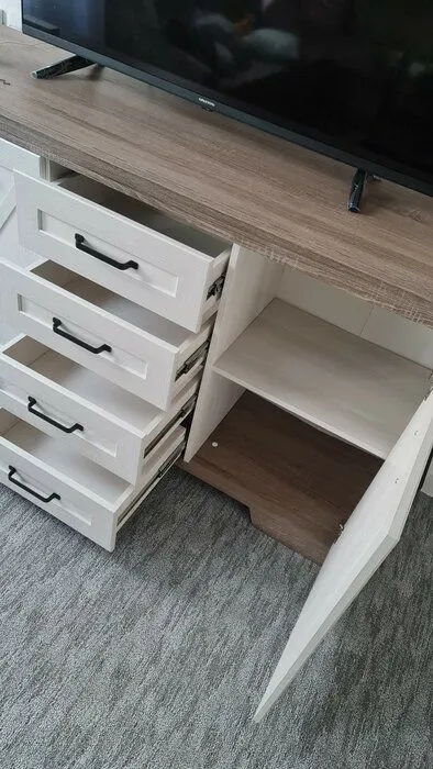 Купили комод серии Марсель, тк шкафы уже были. Тяжелая, прочная, качество понравилось. Комод, муж собирал сам. Говорит, не сложно. Мебелью довольны.