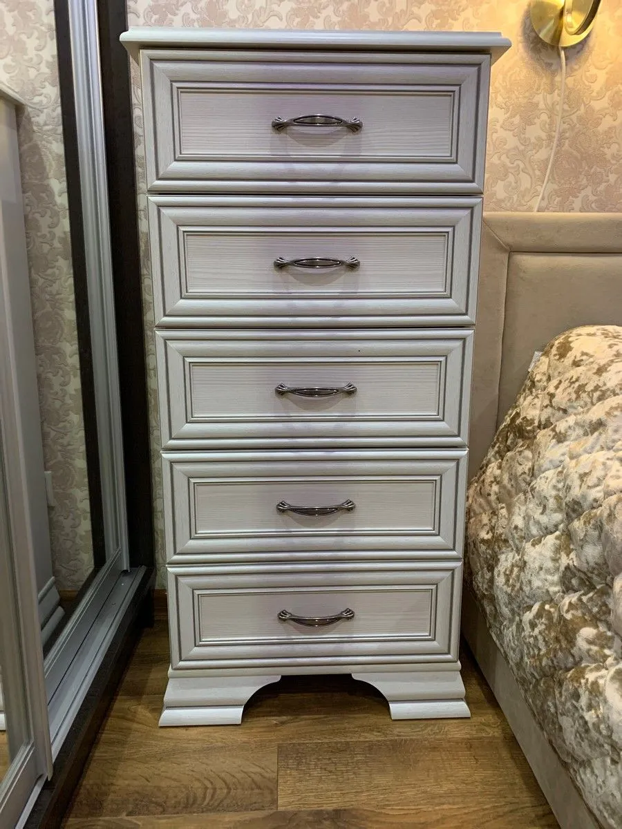 Заставьте пространство работать на вас! Узкий комод Tiffany 5S/50 – это отличный способ организовать систему хранения в условиях ограниченных площадей. При ширине 54 см и высоте 109 см он займет меньше квадратного метра пространства и станет уютным местом для белья и других вещей.