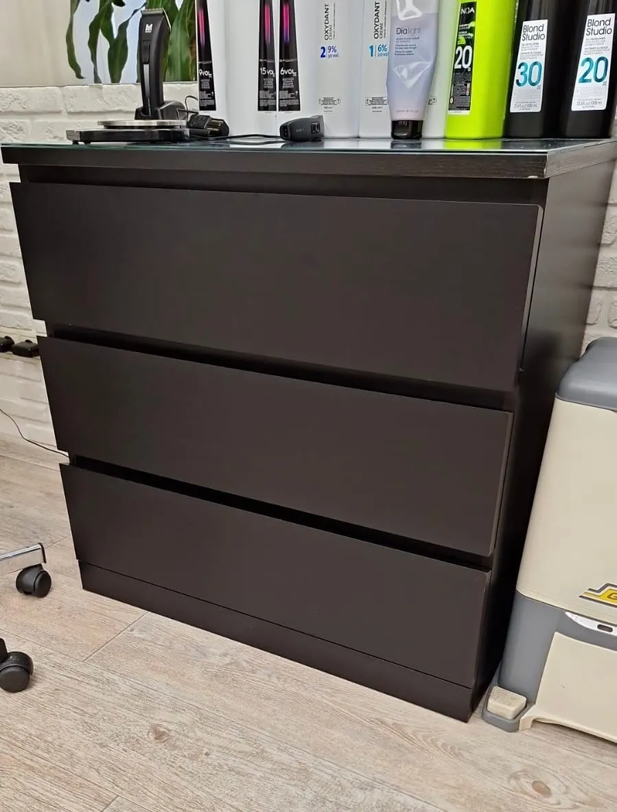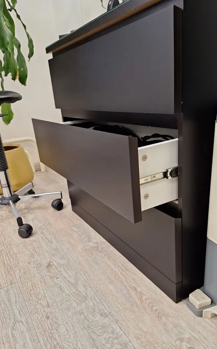 Ящики отлично работают, выглядит комод достойно, цвет венге. Рекомендую к покупке. Сверху покрыли стеклом самостоятельно.