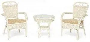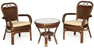 Изумительный террасный комплект мебели Secret De Maison из коллекции ANDREA, состоящий из столика и двух кресел, будет прекрасно смотреться в загородном доме, на дачной веранде, отлично подойдёт для отдыха на приусадебном участке. Уникальные плетеные узоры из натурального ротанга, выполненные вручную с использованием нескольких видов традиционного индонезийского плетения, добавят ноты изысканности и индивидуальности в ваш интерьер. Небольшой столик со столешницей из закаленного стекла, дополненный миниатюрной нижней полочкой, практичен и элегантен. Стекло обладает повышенной прочностью, долговечностью, способно многие годы не утрачивать своей первоначальной привлекательности. Два эргономичных кресла с мягкими подушками позволят удобно расположиться для комфортного отдыха. Тканевая обивка подушек проста в уходе, прослужит вам долгие годы, сохраняя свой первоначальный вид. Эта прочная и практичная мебель покрыта прозрачным матовым лаком, устойчивым к УФ-излучению, способна выдержать большие нагрузки, устойчива к повышенной влажности и долгие годы сохранит свой презентабельный вид. Комплект идеально сочетается с мебелью из коллекции ANDREA, поставляется в собранном виде.