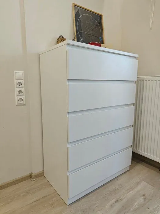 Очень простой в сборке, из инструментов понадобится только отвёртка Качественные детали и необходимый комплект винтиков/шурупов и прочего Эстетичный внешний вид Достаточно вместительный. Отличный комод за свои деньги. Легкая и понятная сборка благодаря инструкции