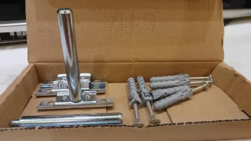 в наборе были крепления, но мы их не использовали. повесили полку на кронштейны для надежности, т.к. на полку поставили тяжёлые горшки с цветами.
