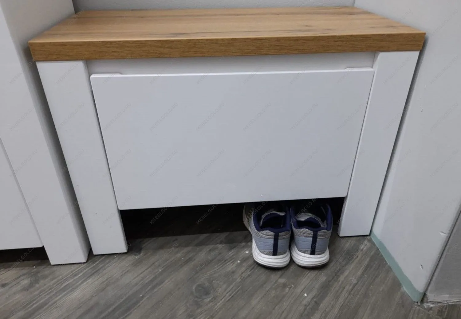 Долго присматривался к ассортименту магазина, искал что-то простое, но красивое. Наконец увидел эту прихожую. Белый цвет мебели добавил много света. Отдельно отмечу вместительность: большая семья у нас, и этот факт стал решающим для покупки данного набора.