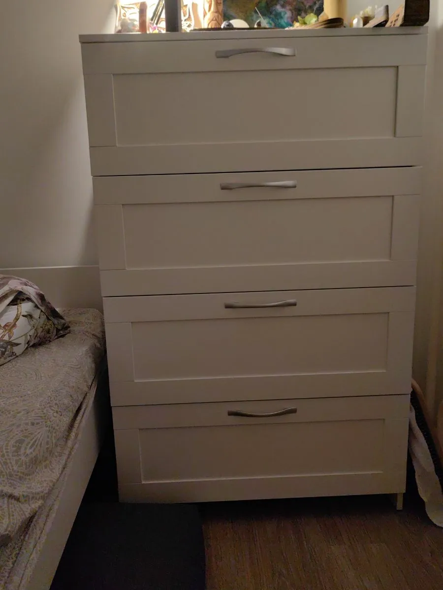 ГУД ЛАКК - знакомая мебель, которую легко купить и собрать! Комод СИРИУС 4 ящика — элегантность и качество в каждой детали! Серия мебели СИРИУС вдохновлена популярной серией BRIMNES от IKEA, и станет идеальным дополнением вашей квартиры. Лаконичный дизайн комодов гармонично впишется в любой интерьер, а компактные размеры не займут много места. Почему выбирают комод СИРИУС 4 ящика? Комод СИРИУС 4 ящика универсальный комод небольшого размера, который позволяет организовать хранение множества необходимых вещей – в верхние необходимые мелочи, чтобы были всегда под рукой, в других – подушек, одеял, белья или одежды, ведь благодаря глубине и максимальной нагрузке 8 кг они подходят для любых целей. А на столешнице комода можно поставить все, от рамок и ваз до аквариума – ведь максимальная нагрузка на нее целых 15 кг! Компактный размер и вертикально расположенные позволяет разместить его в небольших пространствах. УЗНАВАЕМЫЙ ДИЗАЙН В СТИЛЕ СКАНДИНАВСКОГО МИНИМАЛИЗМА. Комод с филенчатым фасадом — это элегантное решение, которое добавляет изысканности, и может использоваться в любых интерьерах. Удобные ручки без острых краев одновременно элегантны и безопасны. Утопленная нижняя планка добавляет комоду легкости и воздушности. ВМЕСТИТЕЛЬНЫЕ ЯЩИКИ. Здесь удобно хранить книги, гаджеты и аксессуары для них, украшения, или мелочи, и многое другое, что обязательно должно быть у Вас под рукой. Тумба МАЛЬТА – это маленькая Нарния). ЭКОЛОГИЧНОСТЬ. Наша мебель производится на заводе полного цикла по принципу «от древесины до готового изделия». При этом применяются максимально жесткие требования к экологичности на уровне, установленном для детской мебели. КАЧЕСТВО НА УРОВНЕ IKEA. Комод СИРИУС изготовлен на сертифицированной фабрике в Беларуси, которая ранее производила мебель для шведского бренда. Кстати, в том числе поэтому наш ассортимент прекрасно сочетается с мебелью ИКЕА, которая, возможно, есть у Вас дома. Сочетается как по дизайну, так и за счет совпадения цветовой гаммы. ЛЕГКОСТЬ СБОРКИ. Вы можете сами легко и быстро собрать нашу мебель, что позволит сэкономить и время на ожидание сборщика, и деньги на оплату его услуг. А поможет в этом не только высокое качество изготовленной мебели, но и понятная пошаговая инструкция. Кстати, если вы вдруг потеряли инструкцию, ее всегда можно скачать здесь, в карточке товара. НАДЕЖНОСТЬ. Несмотря на то, что гарантийный срок на мебель по закону составляет 24 месяца, реальный срок службы нашей мебели составляет до 20 лет. Уж поверьте, сменить обстановку вы решите гораздо раньше, чем выйдет из строя наша мебель. Мы хорошо знаем жизненный путь нашей мебели. Из Вашей квартиры она переедет на квартиру к детям, потом к внукам, потом на дачу, с дачи – на гараж, а потом, если захотите – вы сможете ее продать! КАЧЕСТВЕННАЯ ПЛОСКАЯ УПАКОВКА. Детали в упаковке уложены максимально плотно, с использованием демпфирующих материалов. Это позволяет максимально снизить риск повреждения при транспортировке. Однако обращаем внимание, что даже самая лучшая упаковка не гарантирует отсутствие повреждений при грубом обращении с товаром в процессе доставки. Но для таких случаев у нас работает сервисная служба, которая всегда готова бесплатно заменить поврежденные элементы (работает ежедневно с 08:00 до 20:00 МСК). ВЫСОКАЯ СОЧЕТАЕМОСТЬ М