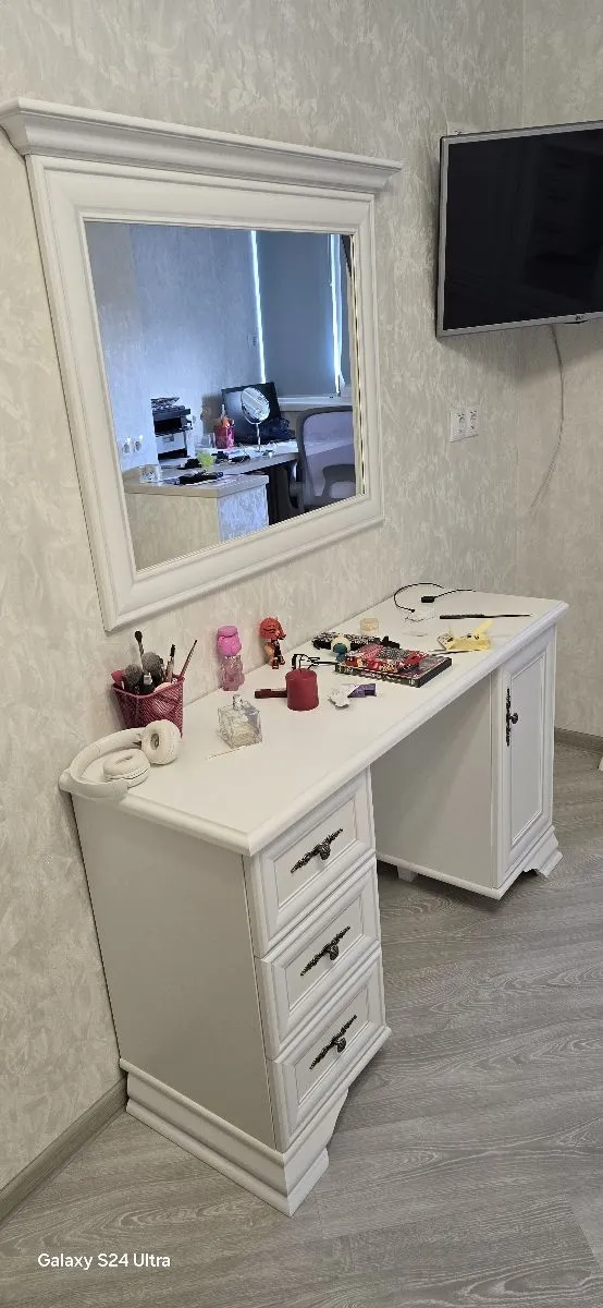 Долго искала, чтоб туалетный столик с зеркалом подошли в мой интерьер. Легкая классика, чистый белый цвет + серебро. Мужу понравилось собирать, все детали пронумерованы, инструкция понятная. За эти деньги всё ок. Если приглядываться и придираться, то смените лезвия у станков, кромка местами закоцана, пришлось подкрашивать. И стружку неплохо бы вытряхивать на производстве.