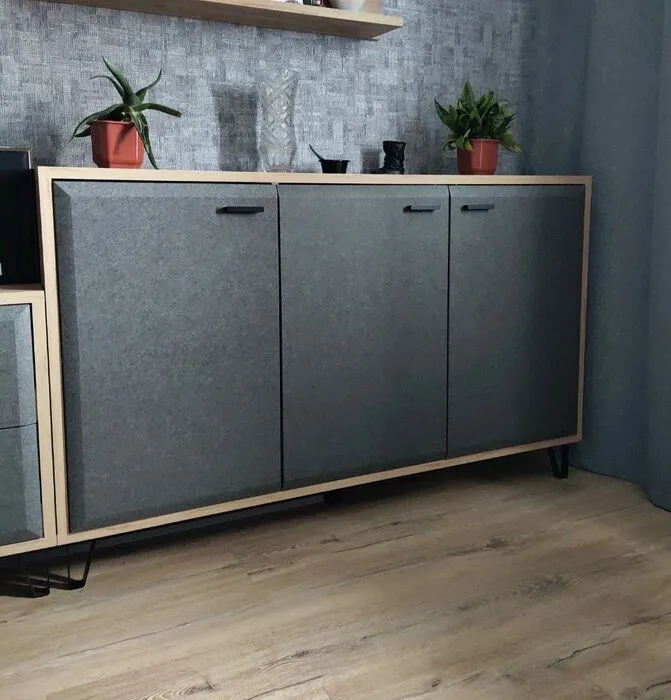 Напольная белорусская тумба Grace имеет удобные внешние размеры. Ее ширина составляет 143 см, а высота – 89 см. Наиболее гармонично она смотрится у стены, при этом, занимает небольшое пространство. Дверцы тумбочки двигаются плавно и бесшумно за счет надежной фурнитуры немецкого бренда Hafele. Такая мебель может быть установлена в спальне, прихожей, детской, гостиной и рабочем кабинете.