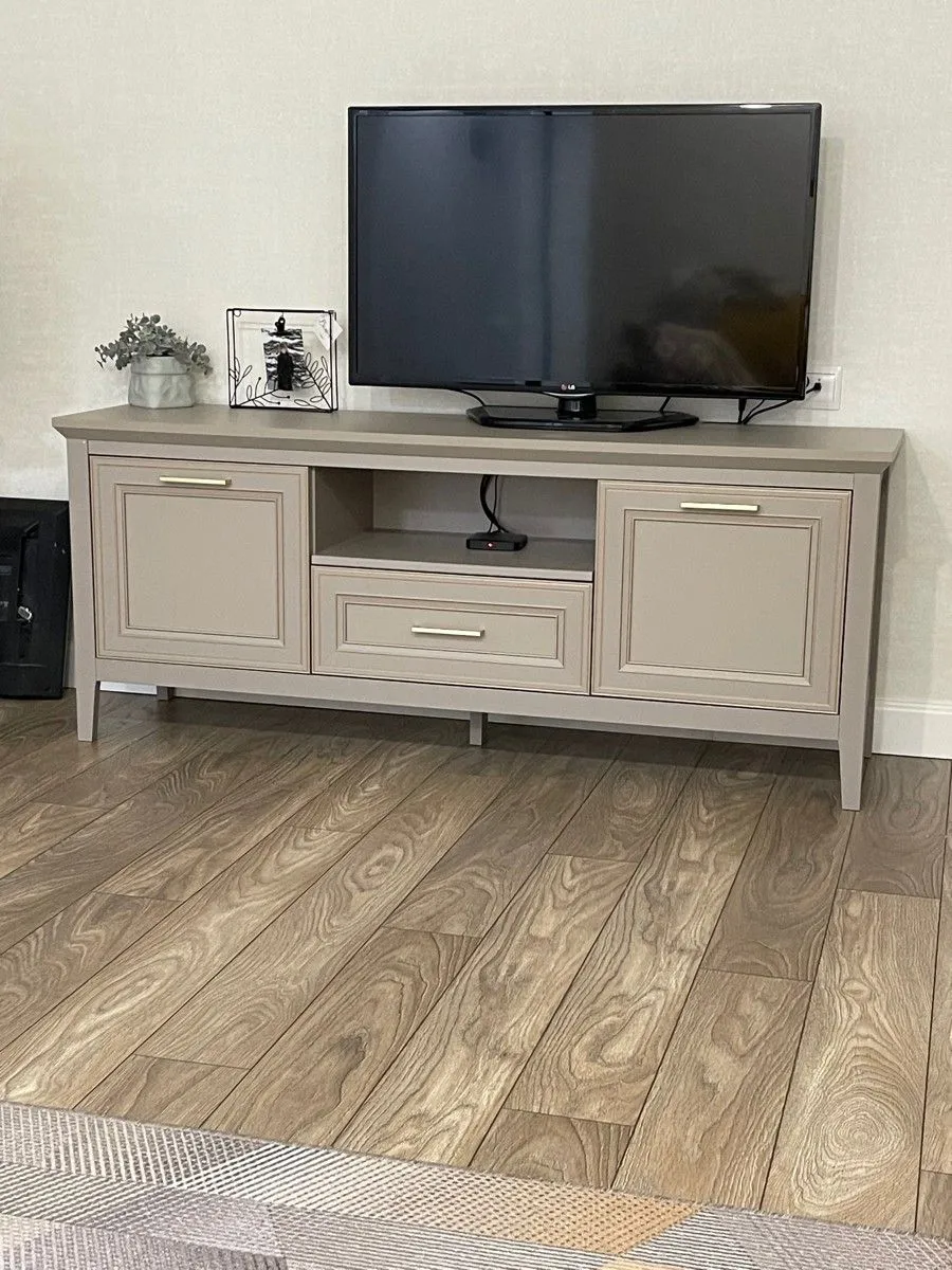 Напольная тумба BRW Classic шириной 158 см и глубиной 40 см подойдет для телевизора диагональю 60-65 дюймов. В ее задней стенке проделаны отверстия для проводов. Индивидуальные особенности тумбы под ТВ «Классик»: