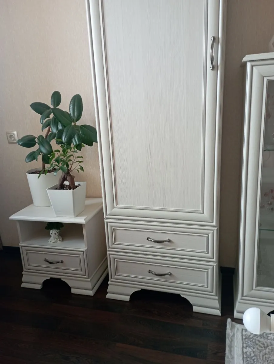 Тумбочку брали к гарнитуру Тиффани специально под цветы. Вписалась хорошо. Сборка простая,инструкция подробная , муж сам собрал за час. Рекомендую.