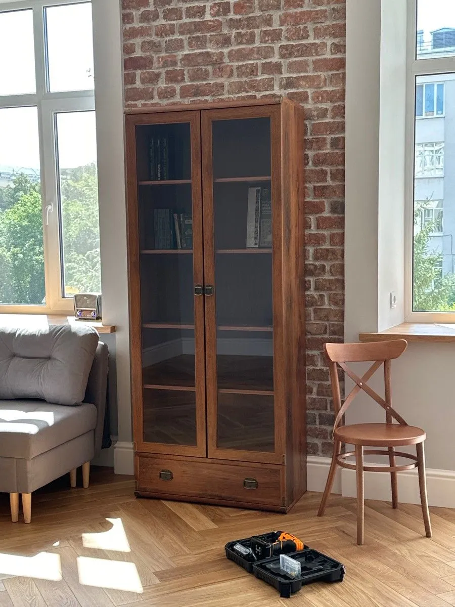 В гостиной элегантная витрина легко станет частью гарнитура, в комнате ребенка поможет организовать учебную зону, а в кухне станет удобным местом для хранения фарфора и хрусталя. Фасады насыщенного коричневого цвета дуб саттер идеально вписываются в темные и светлые интерьеры в стиле классика и кантри.