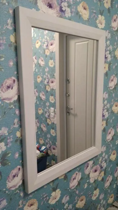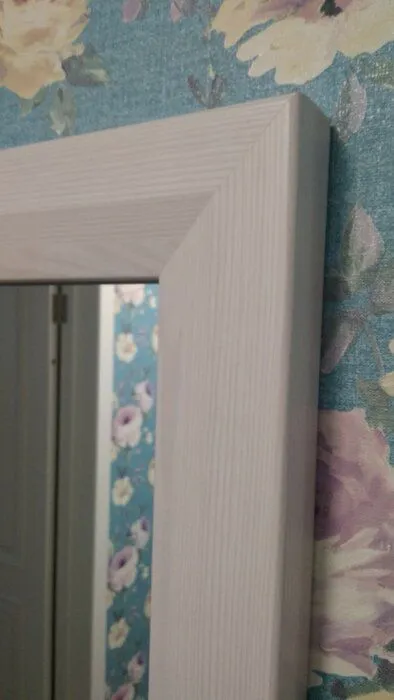 Зеркало подходит для вертикального и горизонтального расположения. Но оно всё же удобнее для горизонтального. Вертикально в полный рост не самый комфортный размер. Ширина рамы 7 см. Чтобы повесить вертикально, придется немного пошаманить с креплением - повернуть его. Зеркало очень тяжёлое, 20 кг. Рама из натурального дерева, сзади ещё деревянный щит. Цена 6300 рублей